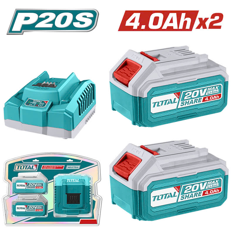 Bộ 2 pin 4.0Ah Total TFBCPK1424 ( 20V*4.0Ah kèm sạc nhanh )