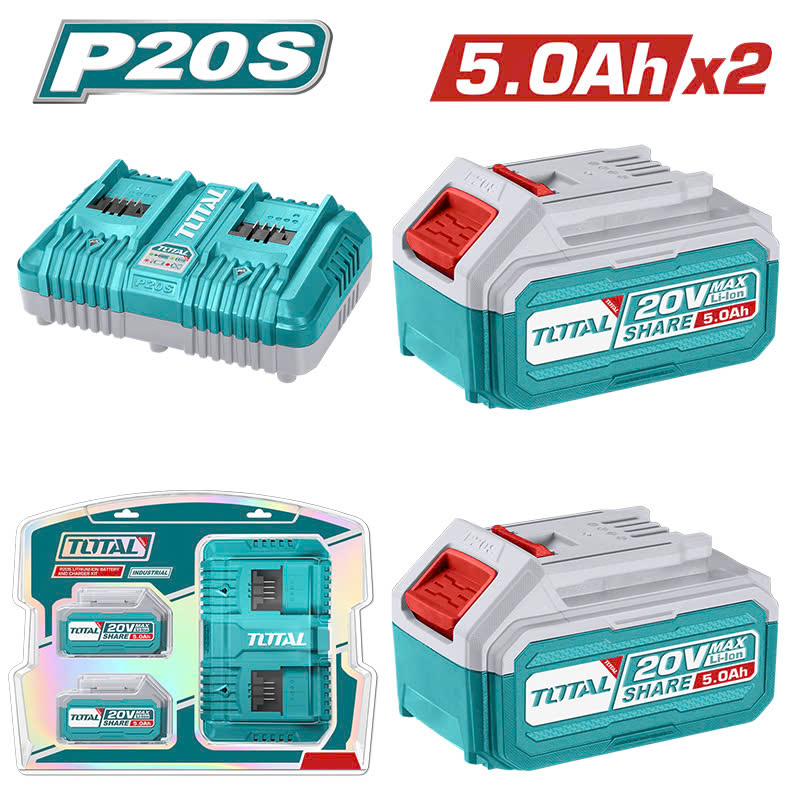 Bộ 2 Pin 5.0Ah Total TFBCPK2425 ( 20V*5.0Ah kèm sạc đôi )
