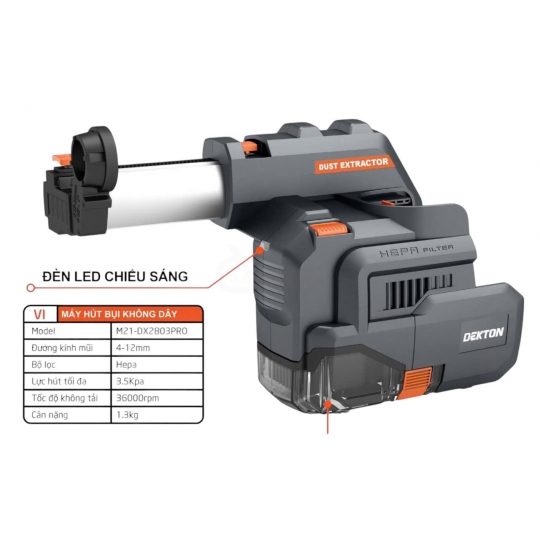 Phân loại : Bộ hút bụi Pin 21V kết nối khoan Dekton M21-DX2803PRO ( chưa Pin & Sạc )