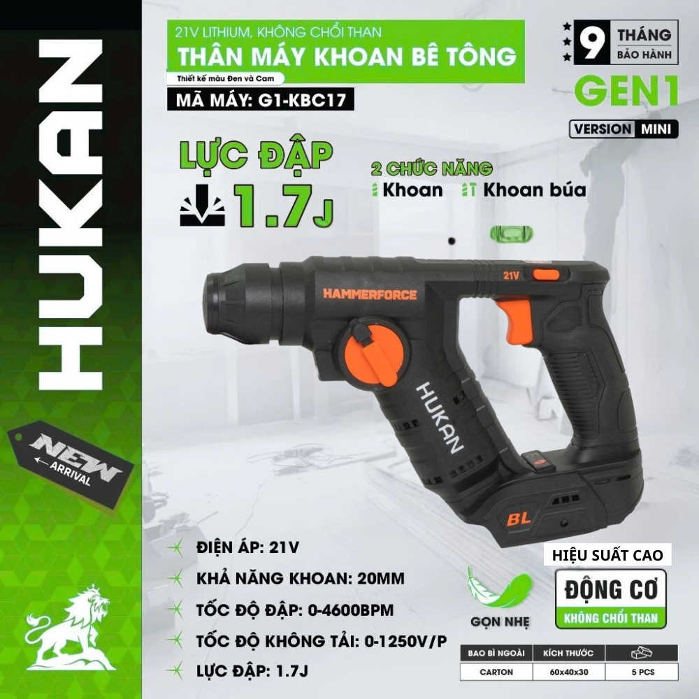 Khoan bê tông Pin 21V Hukan G1-KBC17 ( chưa Pin & Sạc )