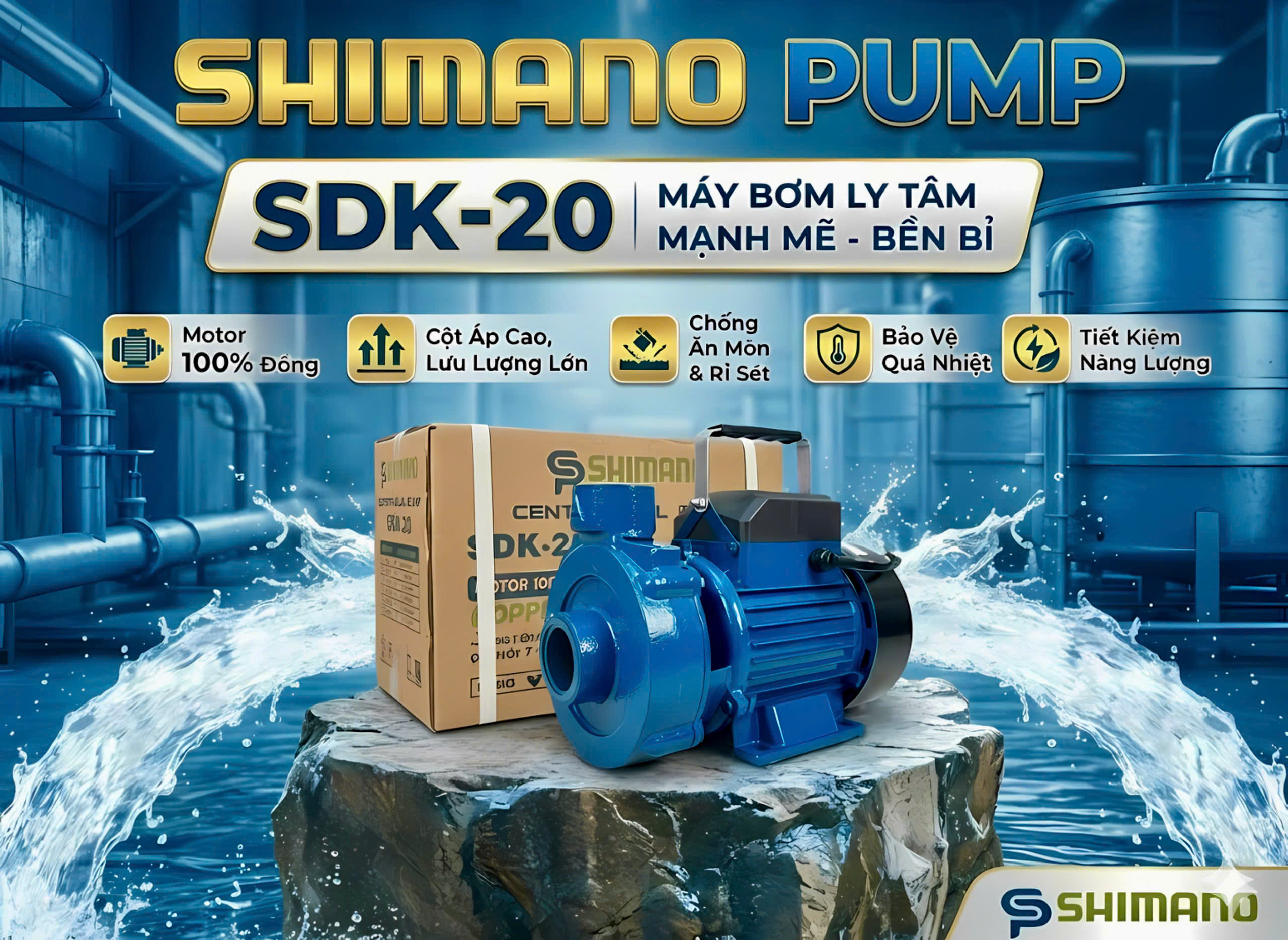 _là lựa chọn tối ưu cho các yêu cầu cần áp cao cùng lưu lượng vừa phải — từ tưới tiêu, tăng áp cho hệ nước sinh hoạt nhiều tầng đến cấp nước cho nhà xưởng nhỏ. Với motor 100% dây đồng, công suất 750W và khả năng đẩy cao tới 16 m, SDK-20 cân bằng giữa hiệu suất, độ bền và chi phí vận hành hợp lý. Sản phẩm phù hợp cho gia đình có bể ngầm, tòa nhà nhỏ, hệ thống tưới, hoặc ứng dụng công nghiệp nhẹ cần bơm nước lên cao.