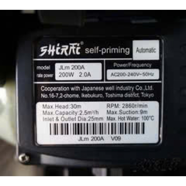 Phân loại : Máy bơm tăng áp điện tử 200W Shirai JLm 200A
