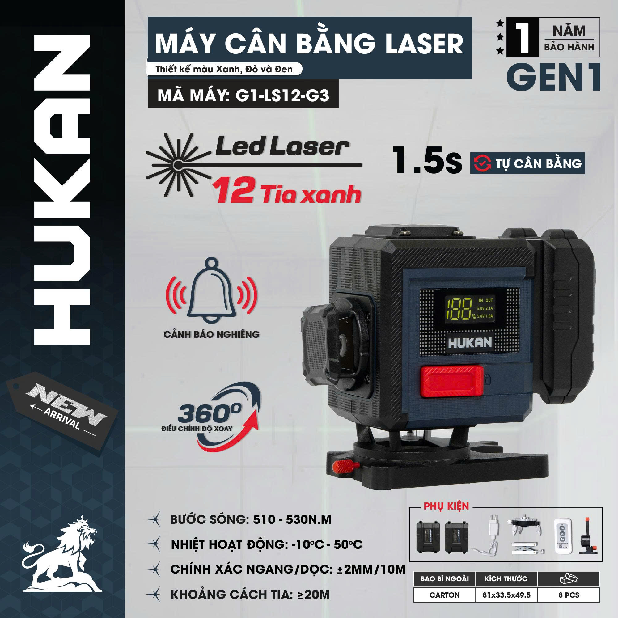 Máy cân bằng laser 12 tia xanh Hukan G1-LS12-G3