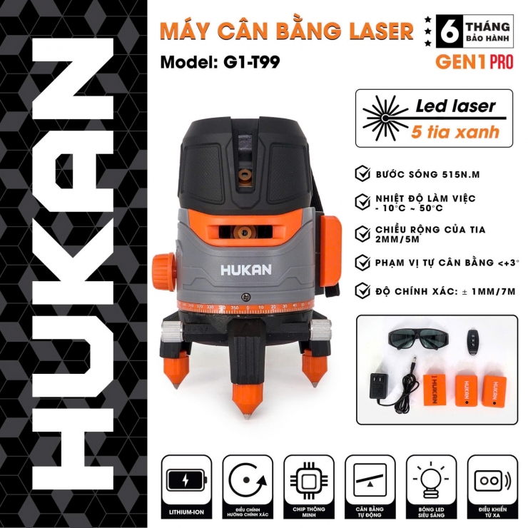 Máy cân bằng Laser 5 tia xanh Hukan G1-T99