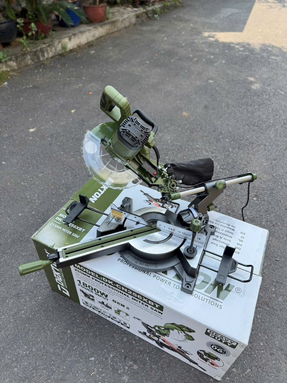 Lưỡi 255 mm — tương thích lưỡi chuyên dụng cho nhôm/gỗ; lưu ý máy giao không kèm lưỡi.