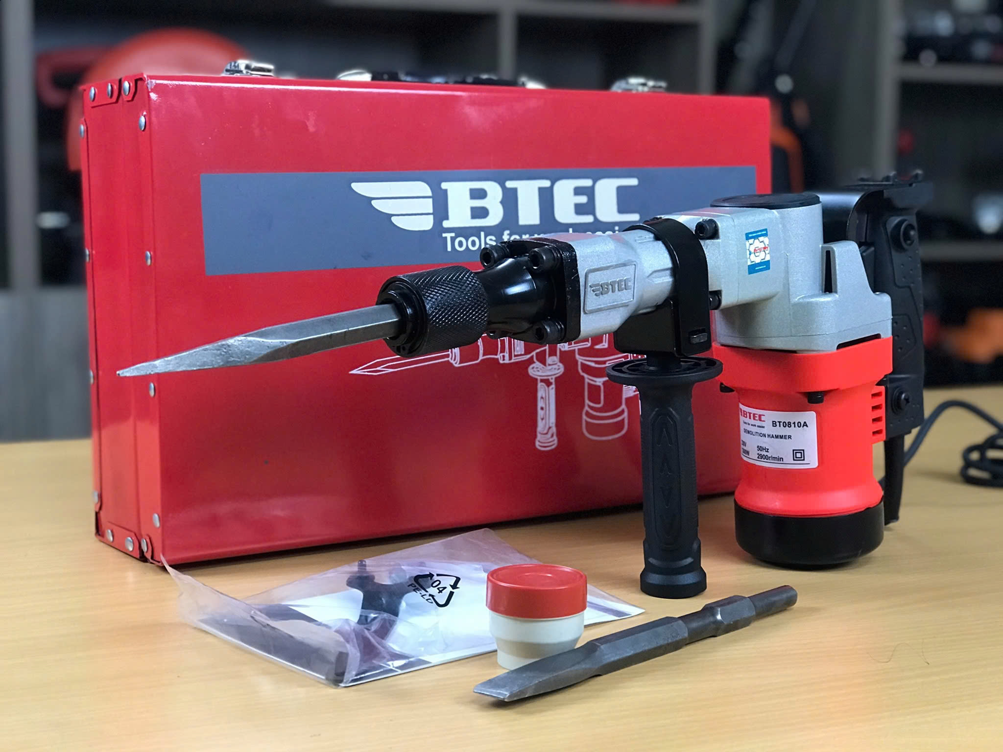 Với tốc độ không tải 500 vòng/phút và cơ cấu búa được tối ưu cho mũi đục 17mm thông dụng, Btec 0810AK vận hành ổn định, kiểm soát rung tốt và giúp người thi công duy trì chính xác đường đục. Sản phẩm đóng gói trong thùng sắt chắc chắn, kèm 1 mũi đục nhọn và 1 mũi dẹp cùng các phụ kiện cần thiết, thuận tiện cho bảo quản và vận chuyển. Chế độ bảo hành 6 tháng mang lại sự an tâm cho khách hàng khi đầu tư thiết bị.