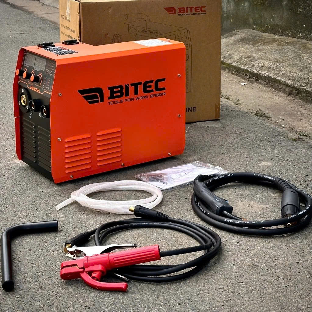 • Thiết kế bền bỉ, đóng gói phụ kiện đầy đủ: bộ dây 1.8m, kẹp mass 1.2m, mặt nạ, búa gõ xỉ — sẵn sàng vận hành.