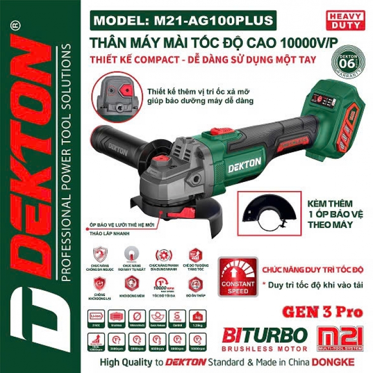 Máy mài pin 21V Dekton M21-AG100PLUS Inverter