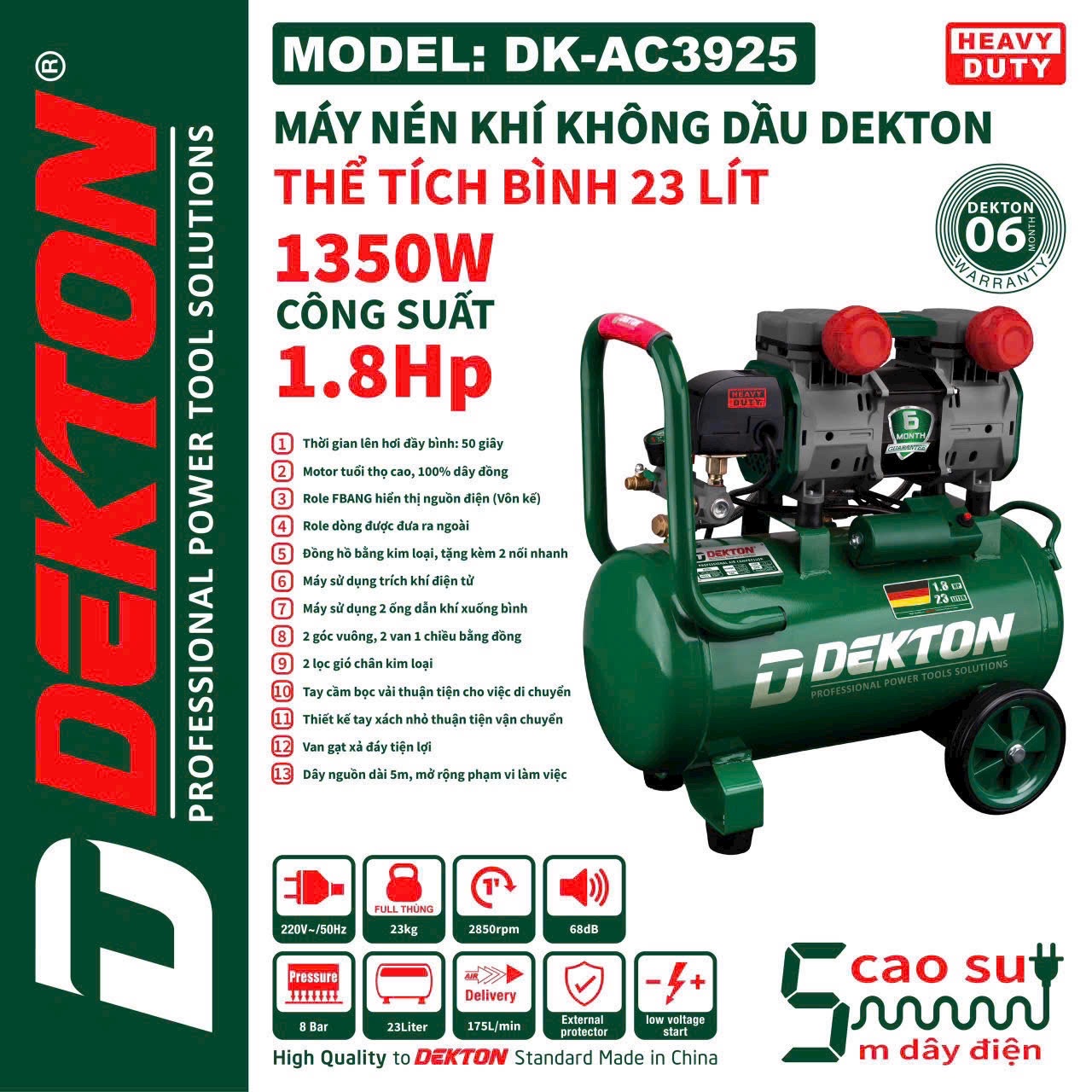 Máy nén khí không dầu 23 lít Dekton DK-AC3925