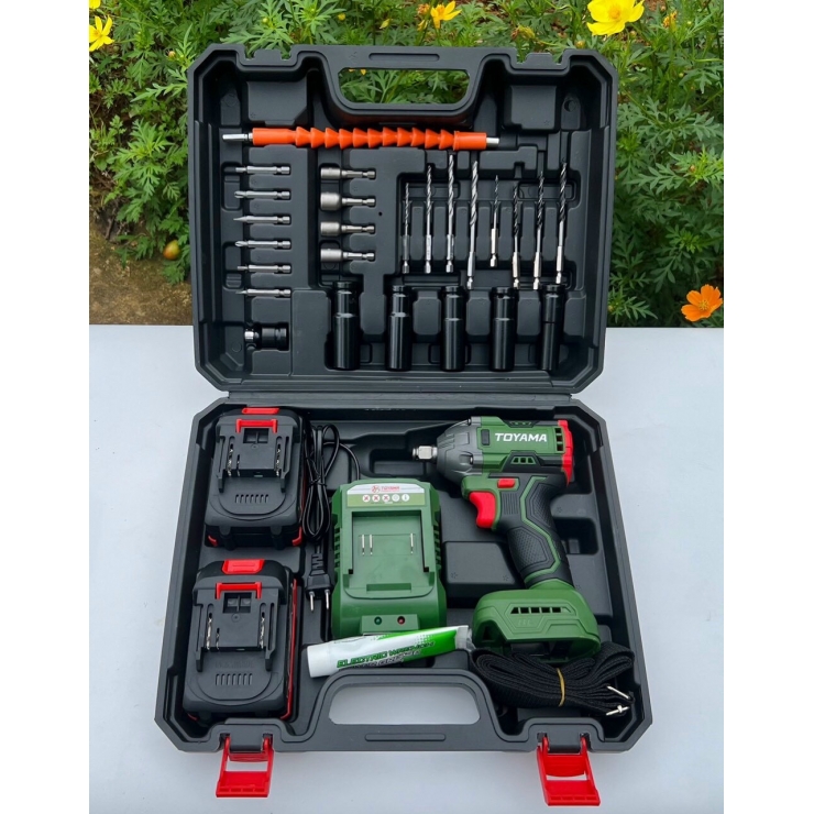 TOYAMA không chỉ cung cấp một máy siết bulong mạnh mẽ mà còn mang đến trải nghiệm mua sắm toàn diện với combo bao gồm thân máy, 2 pin 10cell, sạc nhanh, 24 phụ kiện và hộp nhựa. Điều này giúp người dùng tiết kiệm chi phí và có đầy đủ công cụ cần thiết.