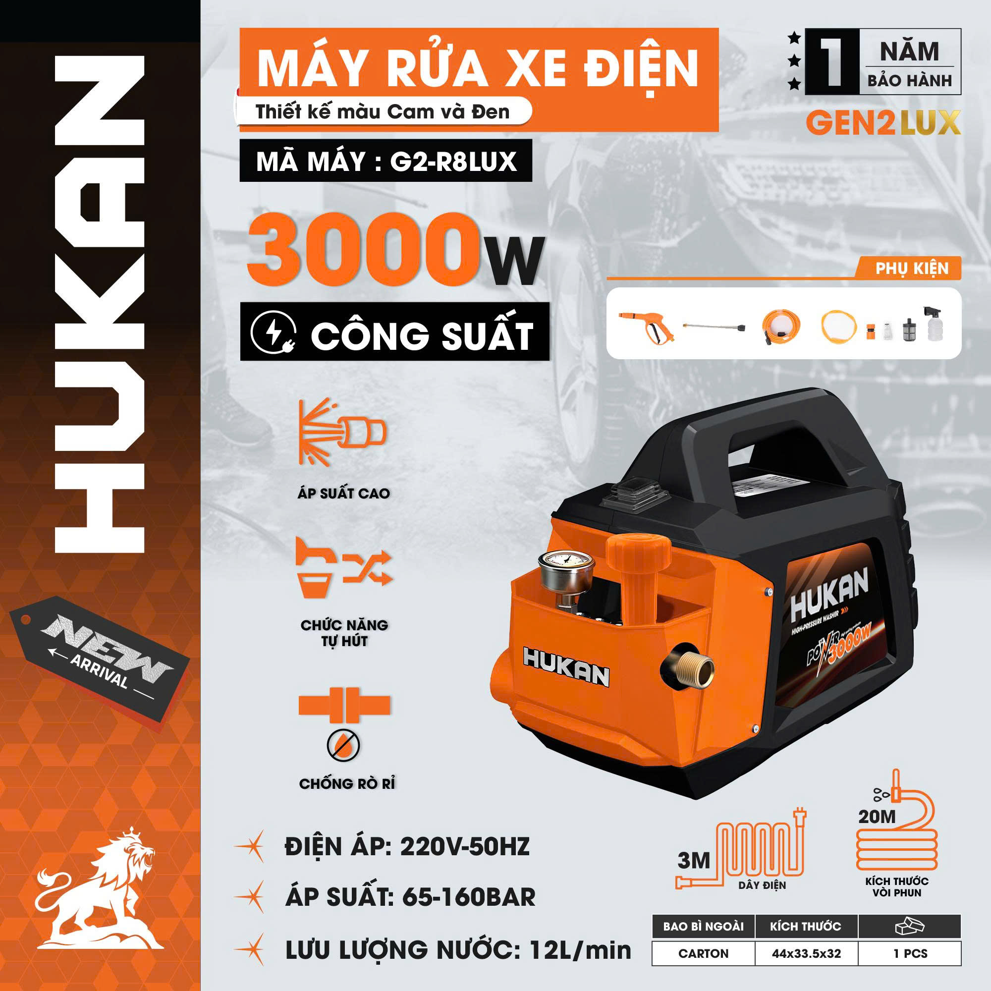 Máy xịt rửa xe 3000W Hukan G2-R8LUX