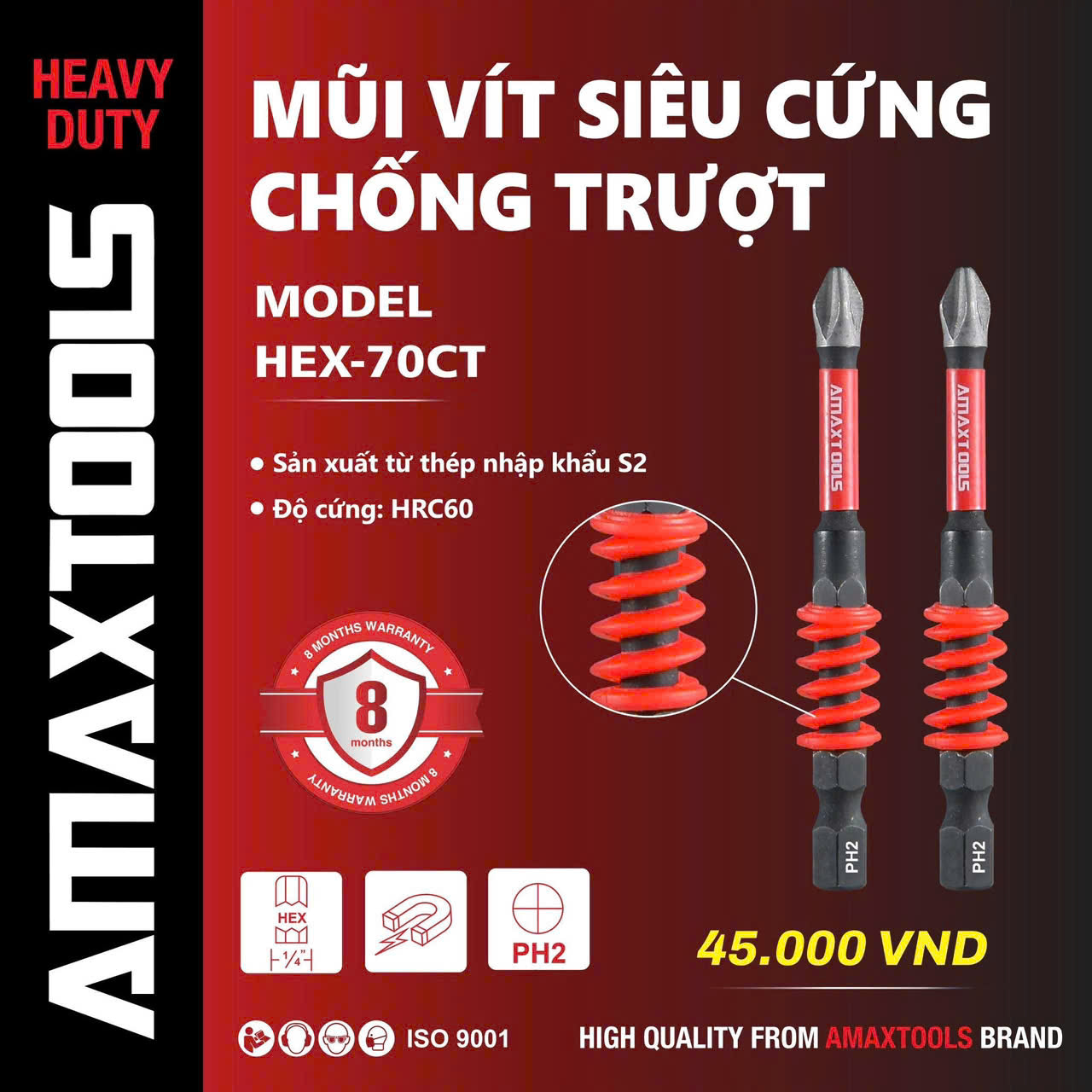 Khi bạn cần mũi vít dài, bền & chống văng để thao tác chính xác ở vị trí khó? Mũi vít Amaxtools HEX-70CT (bộ 2 × 70mm, H4.0, thép S2 HRC60) là lựa chọn tối ưu.