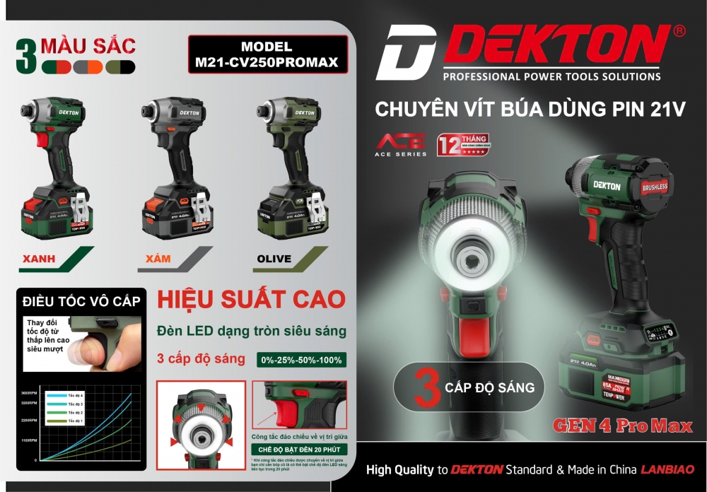 Tại Sao Nên Chọn Máy Bắn Vít Pin 21V Dekton M21-CV250PROMAX Gen 4 Chính Hãng?