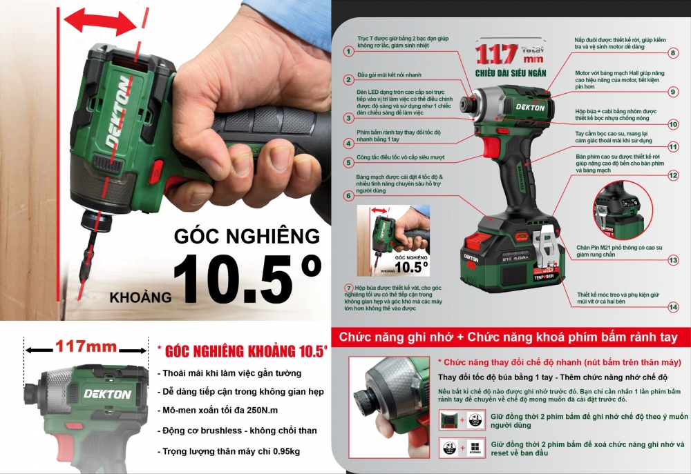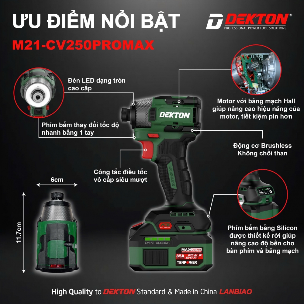 Đặc Điểm Nổi Bật Của Máy Bắn Vít Pin 21V Dekton M21-CV250PROMAX Gen 4
