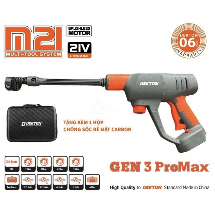 Máy rửa xe dùng Pin 21V Dekton M21-SRX1405PROMAX Gen 3 Brushless - chỉnh tốc 4 cấp