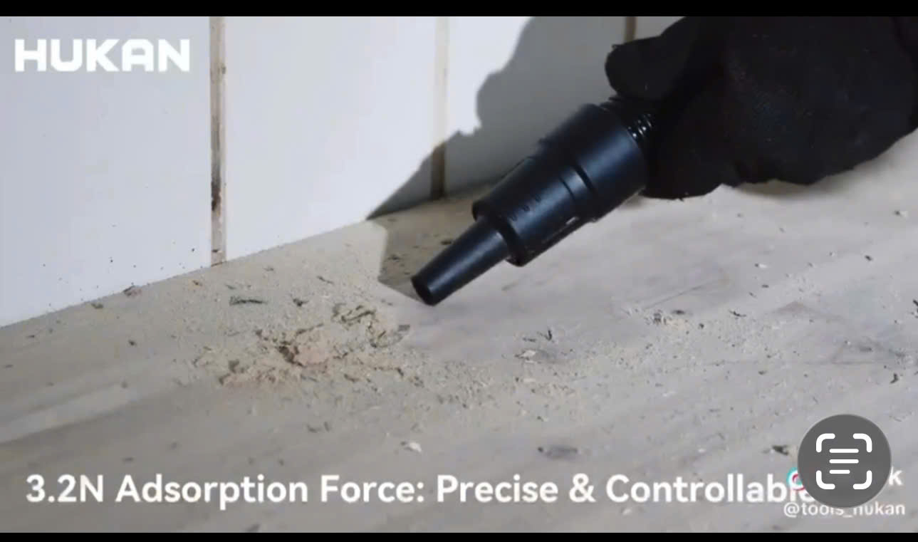 Lực hút 3.2 N và lưu lượng khí 1.1 m³/phút: hút các mảnh vụn, bụi xây dựng và rác nhẹ vào túi/khay chứa.