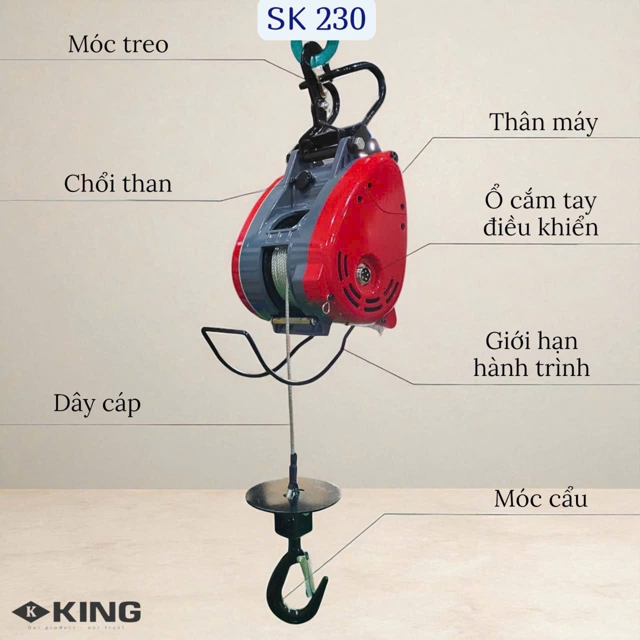 Phân loại : Tời treo không dây 230Kg King SK230 tốc nhanh 30m/p