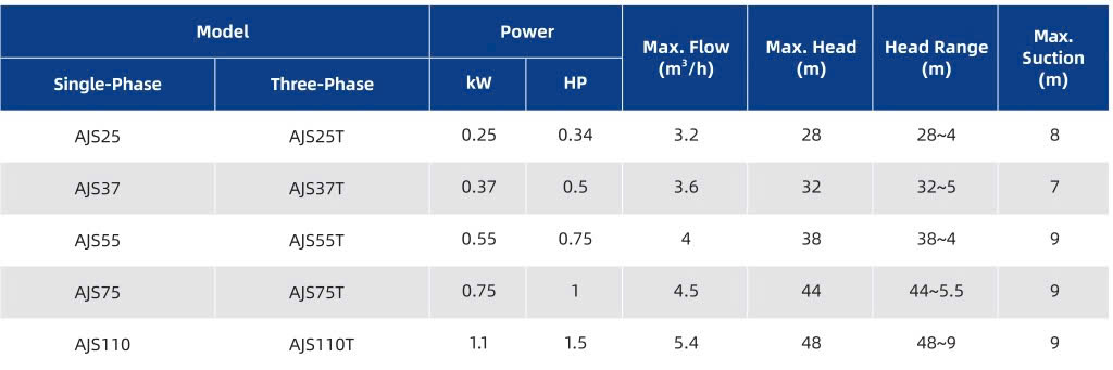 Bơm nước đa tầng cánh Adelino AJS75HT & AJS75T ( 3 pha 1.0Hp-1.0Hp )