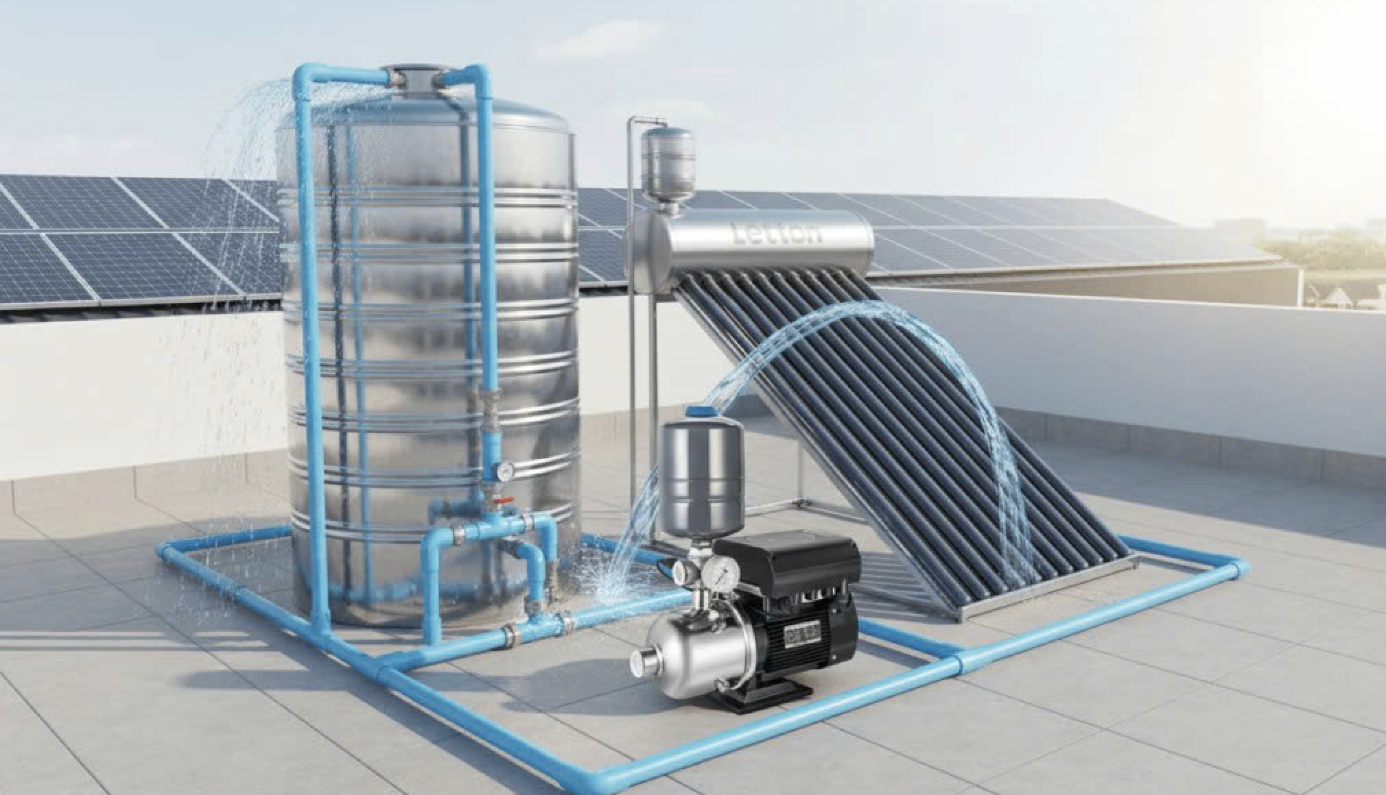Biến tần tích hợp: tự động bù áp, giữ áp ổn định, giảm số lần khởi động, tiết kiệm điện đáng kể.