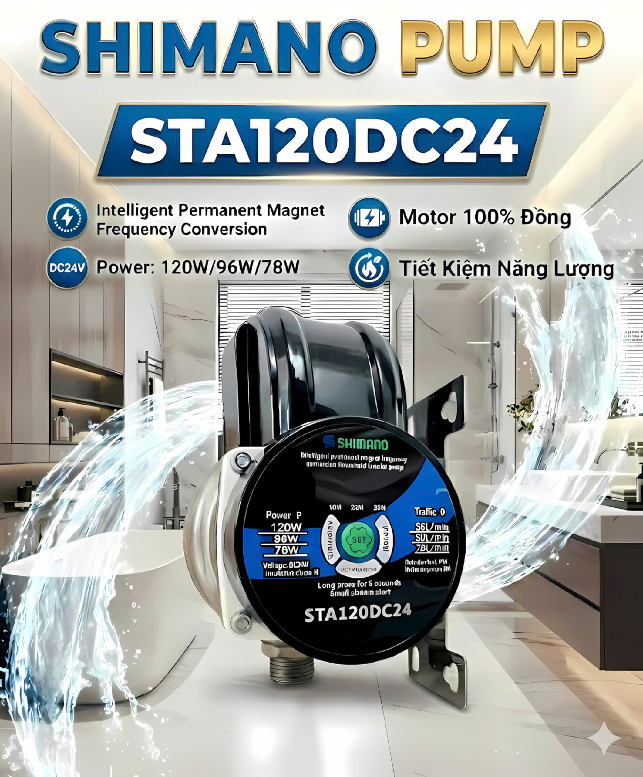 Máy bơm tăng áp mini 120W Shimano STA120DC24 biến tần