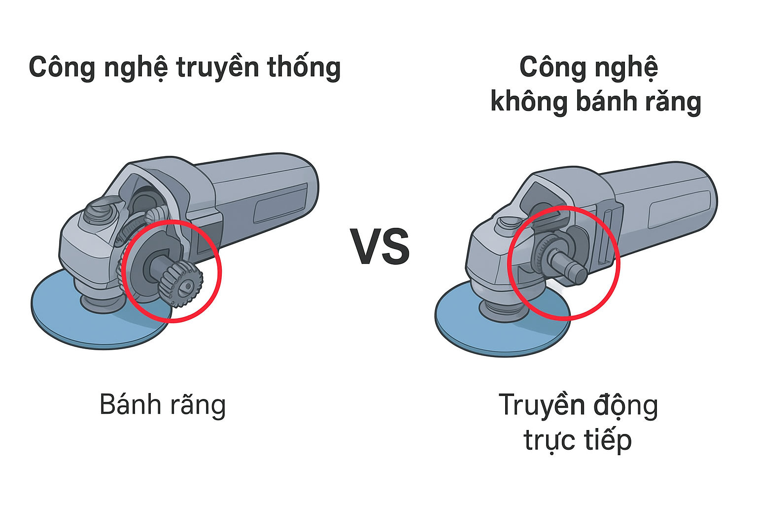 Khắc phục nhược điểm motor trực tiếp cũ: những model “motor trực tiếp cổ” dù không bánh răng nhưng thiếu mạch điều khiển thông minh — dễ sụt tốc, mất lực khi tải. Motor thế hệ mới tự điều chỉnh, duy trì công suất khi cắt/mài.