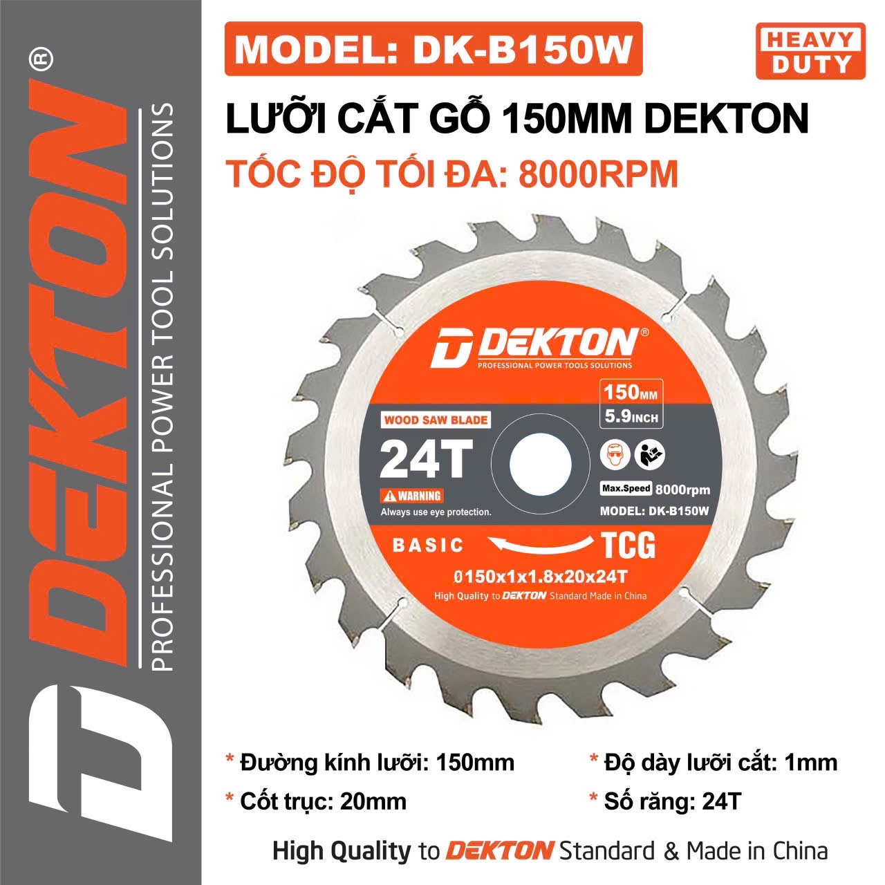 _là lựa chọn hiệu quả cho thợ mộc, xưởng nội thất và công việc DIY , xây dựng cần đường cắt gỗ mịn, chính xác. Với đường kính 150 mm, lỗ tâm 20 mm, độ dày 1.0 mm24 răng, DK-B150W cân bằng giữa tốc độ cắt và chất lượng mép, phù hợp cho cưa bàn nhỏ, cưa cầm tay hoặc máy cưa đa năng có arbor 20 mm. Thiết kế răng tối ưu cho gỗ đảm bảo giảm xé sợi và hạn chế phoi dăm, đồng thời tốc độ giới hạn max 8000 rpm giúp vận hành an toàn khi sử dụng đúng thông số.