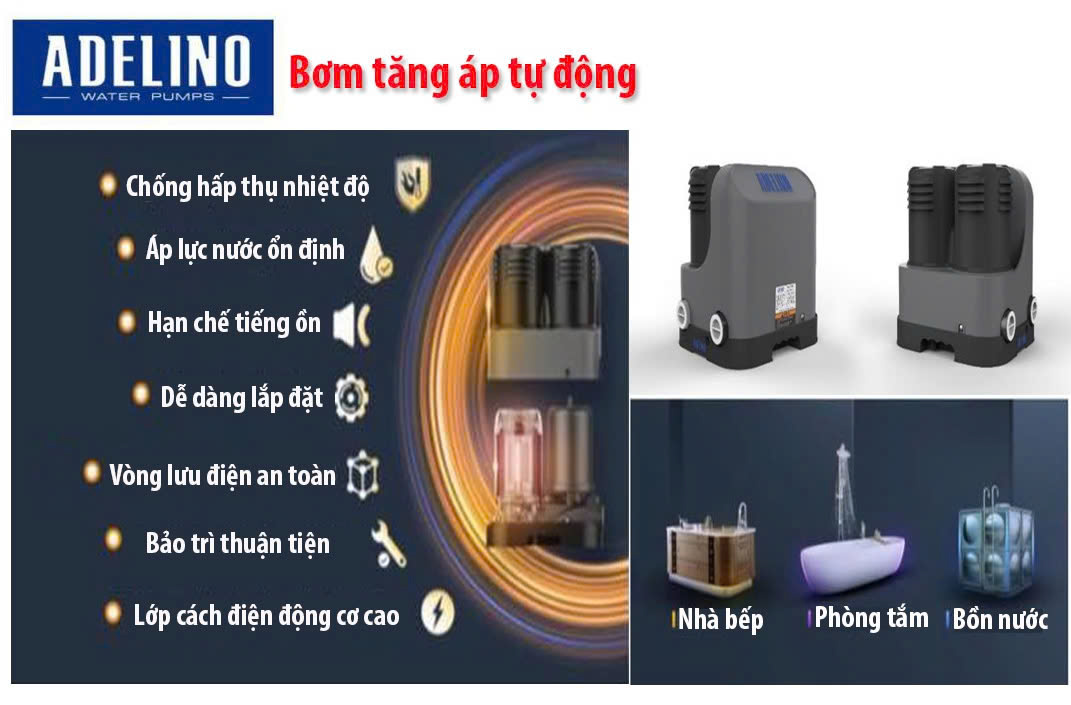 Tăng áp cho nhà phố, nhà ống, nhà biệt thự nhỏ (phù hợp nhà 1–2 tầng hoặc điểm lấy nước ít).
