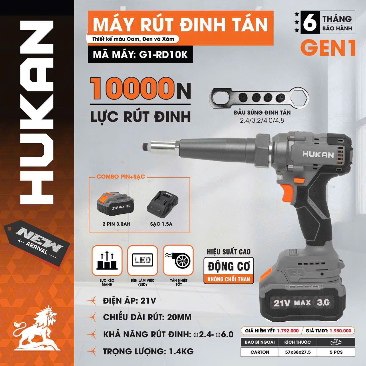 Máy rút rive Pin Hukan G1-RD10K (Φ 2.4-6.0mm ) chưa Pin & Sạc