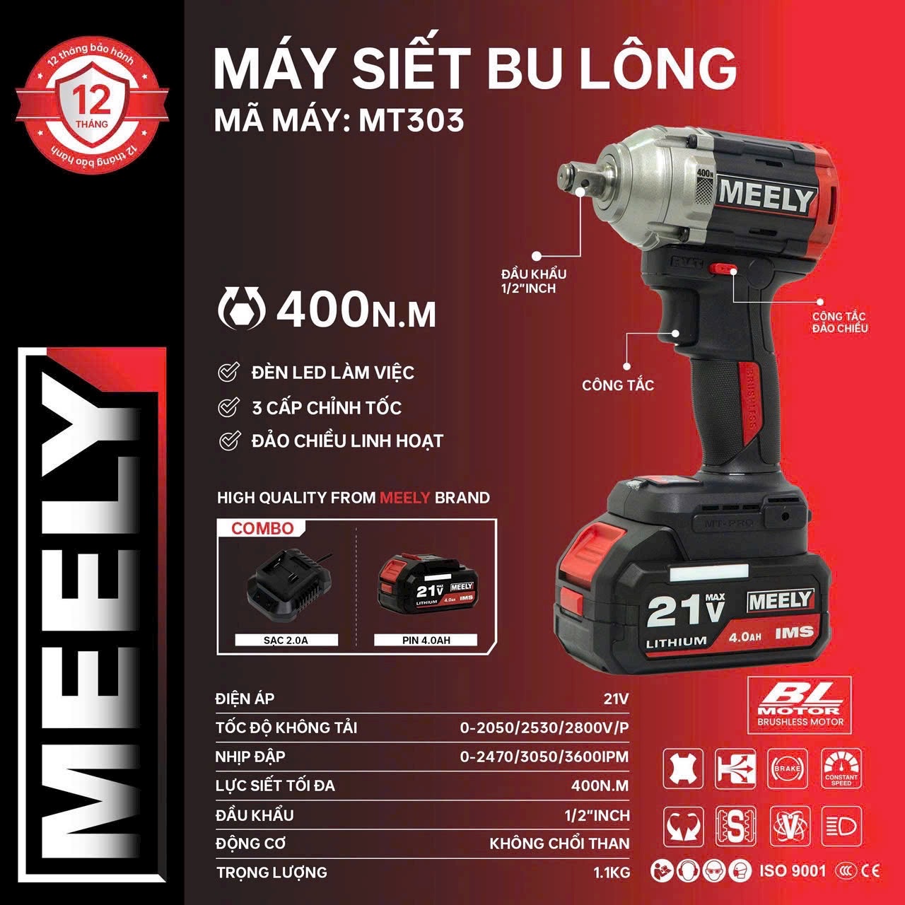 Máy siết bulong Pin 21V MEELY MT303 Brushless