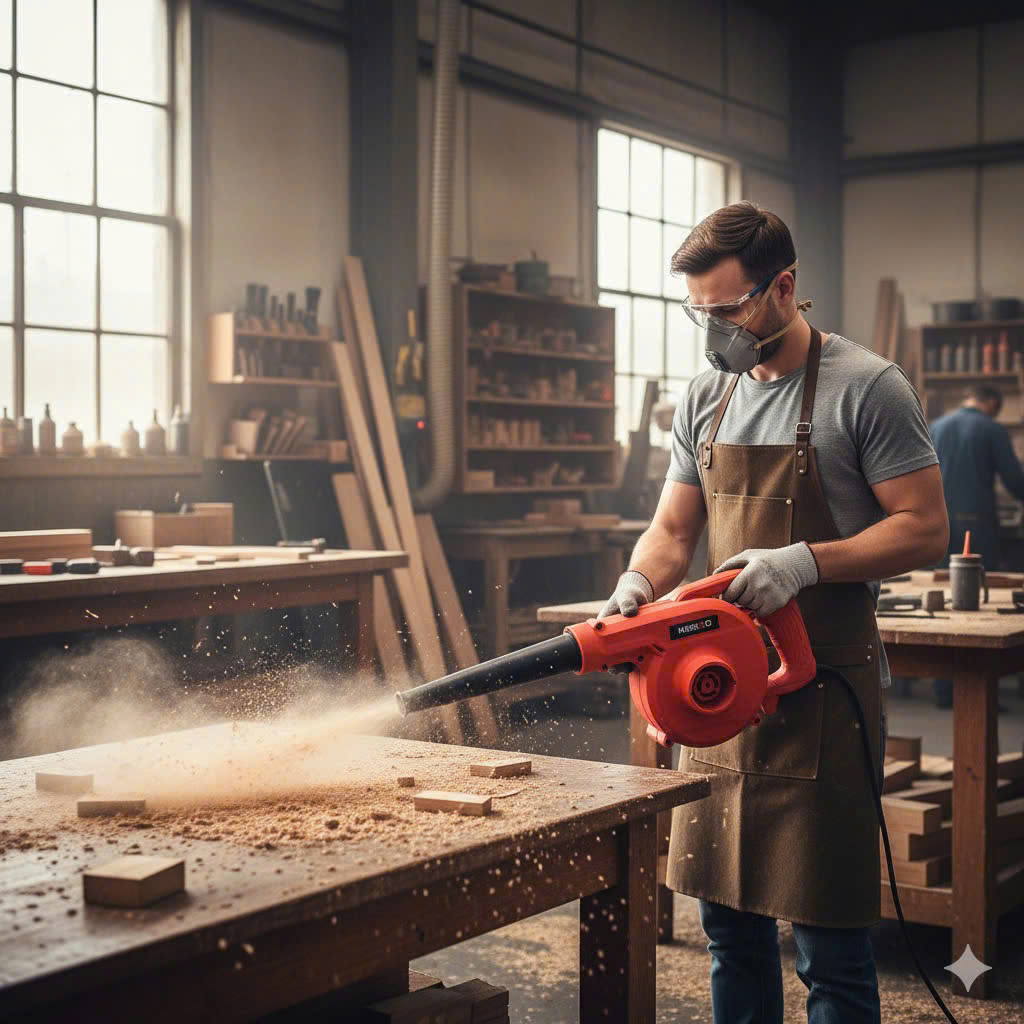 Gara, xưởng nhỏ: thổi sạch mạt gỗ, vụn kim loại nhẹ.