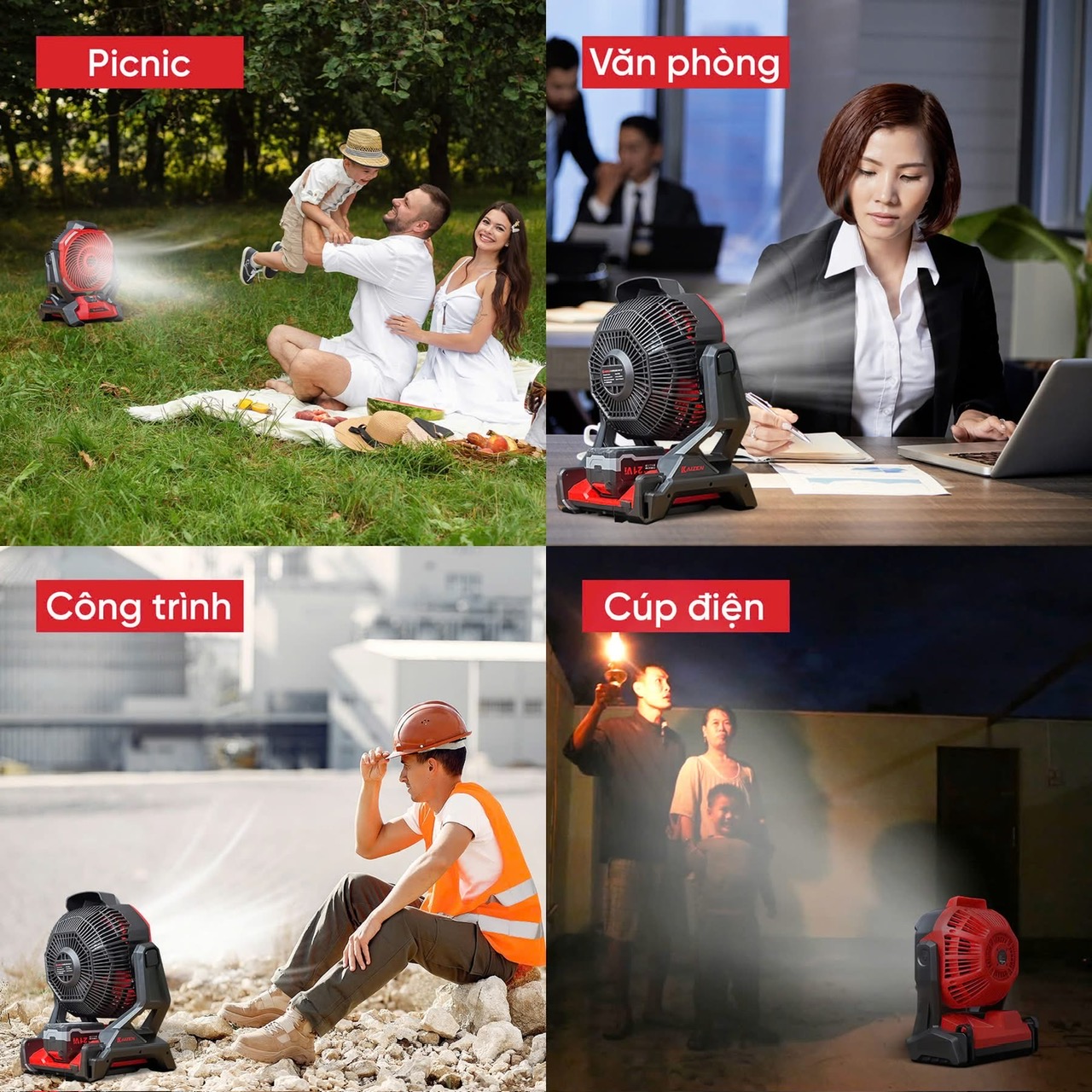 • Camping, dã ngoại, ban công, nhà vườn, nơi cần quạt di động.