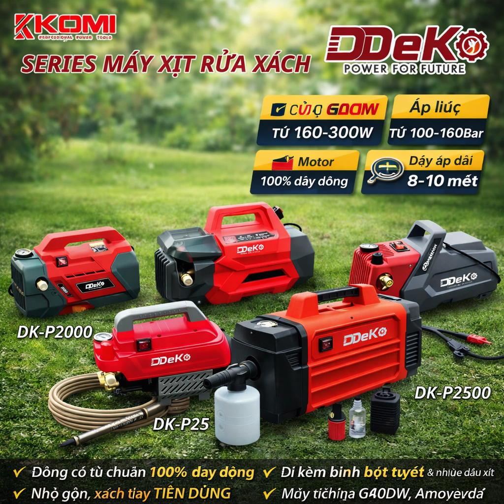 Tổng hợp series máy xịt rửa KOMI & DDeKO 100% dây đồng